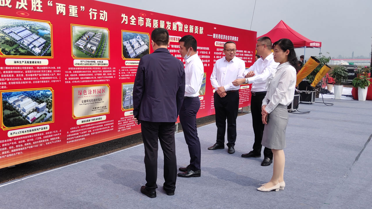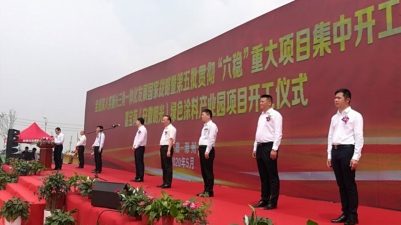 5月15日,滁州市第五批“六稳”重大项目集中开工现场推进会在明光市召开。滁州市委书记张祥安出席并宣布全市第五批“六稳”重大项目开工。滁州市委副书记、市长许继伟致辞滁州市副市长姚志,市政府党组成员张其广,明光市领导徐军、吴守连、张言平等和恒和化工董事长刘展威出席现场推进会。作为第五批“六稳”重大项目之一,本次与嘉宝莉(安徽明光)等项目一起集中开工仪式意味着安徽恒和新材料有限公司项目工程建设全面启动。