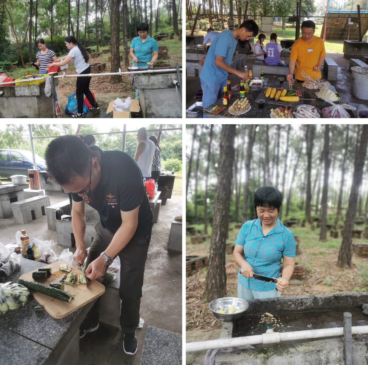 午餐野炊时间到了,大伙分工明确,洗菜,切菜,掌勺,烧烤,各负其责。平时忙碌的公司领导们也借此机会大秀厨艺,在一片欢声笑语中,所有成员大快朵颐,共享丰盛午餐。