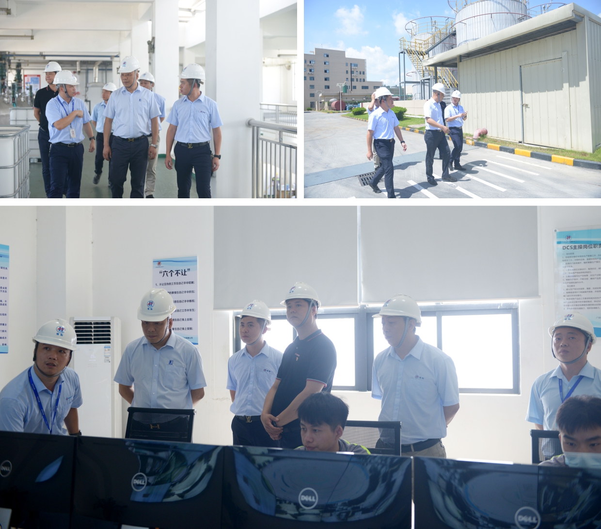 恒和化工董事长刘展威,技术总监李优雄和华东区销售总监何强等陪同卢华龙会长一行参观了公司研发大楼和生产车间等。参观过程中,李优雄详细向卢华龙会长和汤文君秘书长介绍了公司技术研发团队,智能化生产设备,并对产品的生产流程、安全生产管理进行了详细的讲解。卢华龙会长对公司良好的环境、卓越的研发团队、严格的质量控制和先进的管理模式等给予了高度的认可。