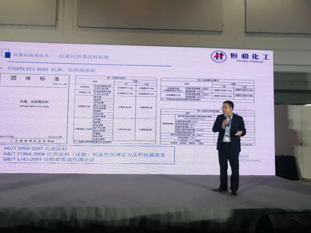 在第四届中部地区涂料产业发展论坛上广东恒和永盛实业有限公司市场部部长李伟发表主题演讲《涂料升级下的建筑乳液技术及应用》。