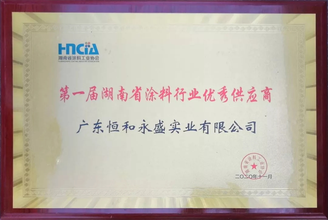 恒和喜讯丨广东恒和永盛实业有限公司荣获第一届湖南省涂料行业优秀供应商称号